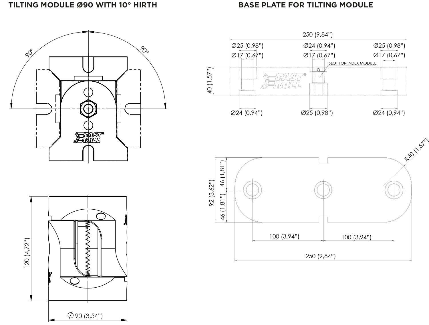 Modulo basculante Ø90 con passi di 10° e piastra di base