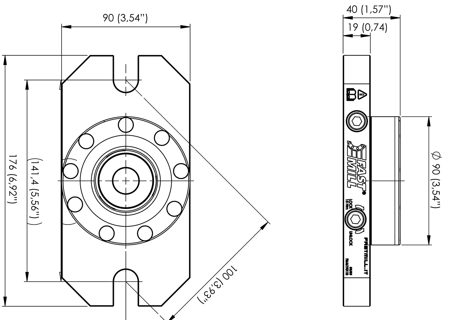 Il modulo FastMill H40 è progettato per l'uso misto in una scanalatura a T o su una piastra come sistema di bloccaggio e posizionamento. L'H40 consente ai clienti di utilizzare il sistema FastMill con o senza piastra.