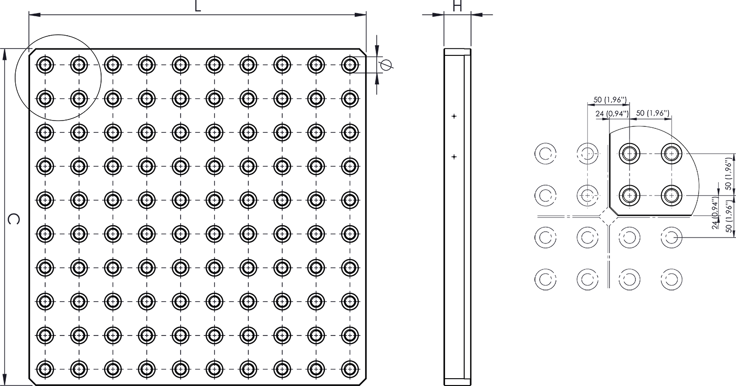 Piastra modulare, è il primo passo per attrezzare una macchina con Tecnologia FastMill. Permette all'utilizzatore di ottenere una griglia forata direttamente sul piano macchina. Fatto con la massima precisione, garantisce punti noti dove fissare i sistemi FastMill. Dimensioni e griglia alternative come soluzioni personalizzate su richiesta.